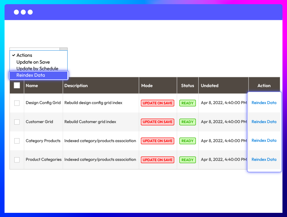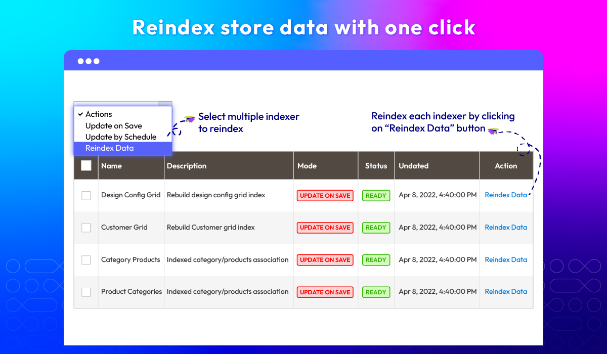 Reindex store data with one click