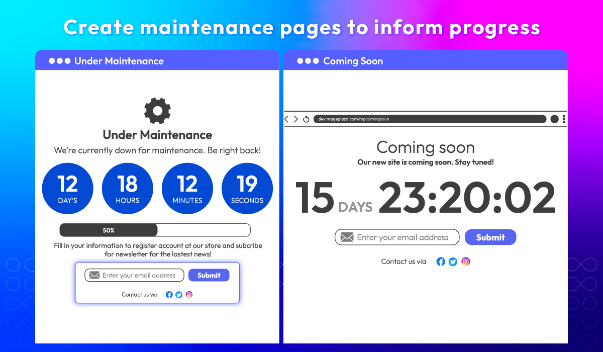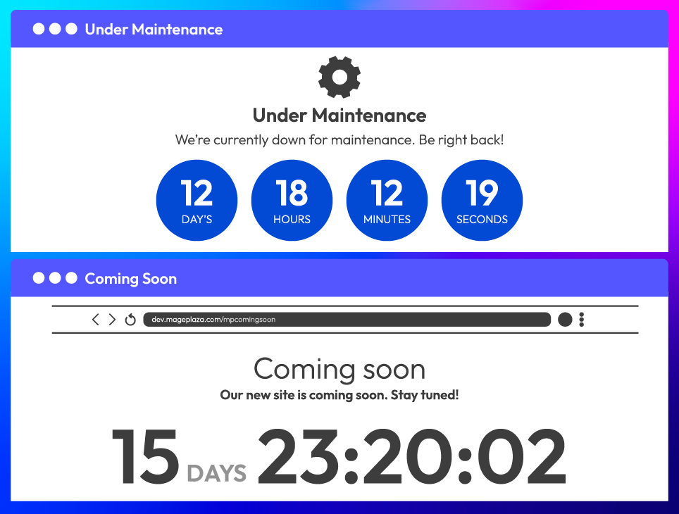Yes, Backend Tools for Magento 2 support Under Maintenance page & Coming Soon page, with 5 countdown timer styles to select. Moreover, you can customize the page with branded content & images.