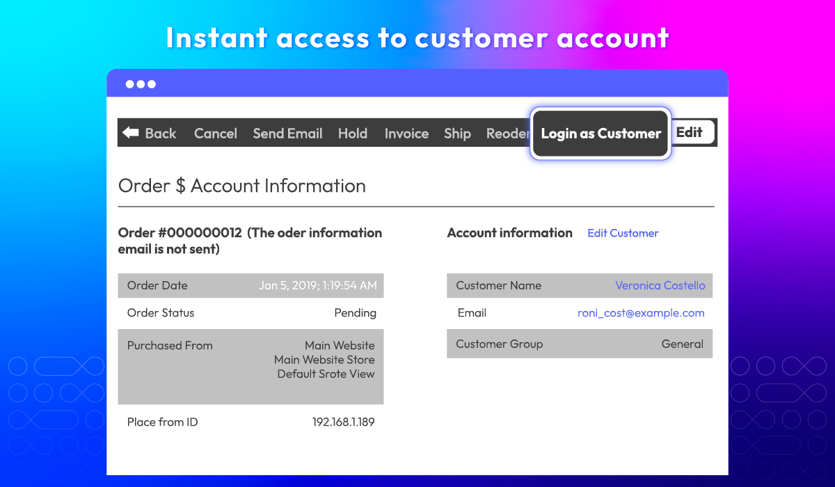 Get access to customer account instantly