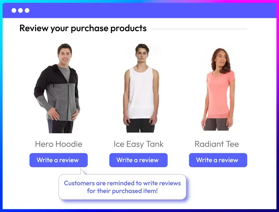 Make it easier to gather customer feedback with automated reminders. By keeping the review process active and effortless, your store can stay connected with customers and continuously build trust through genuine, ongoing engagement.