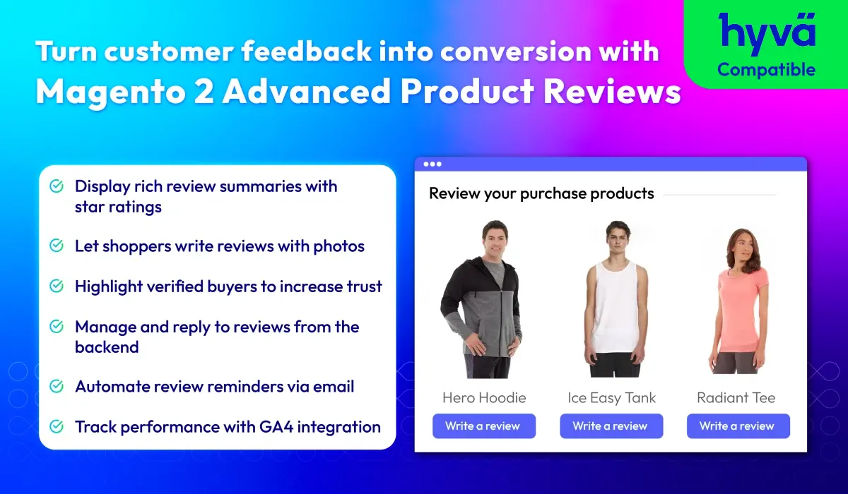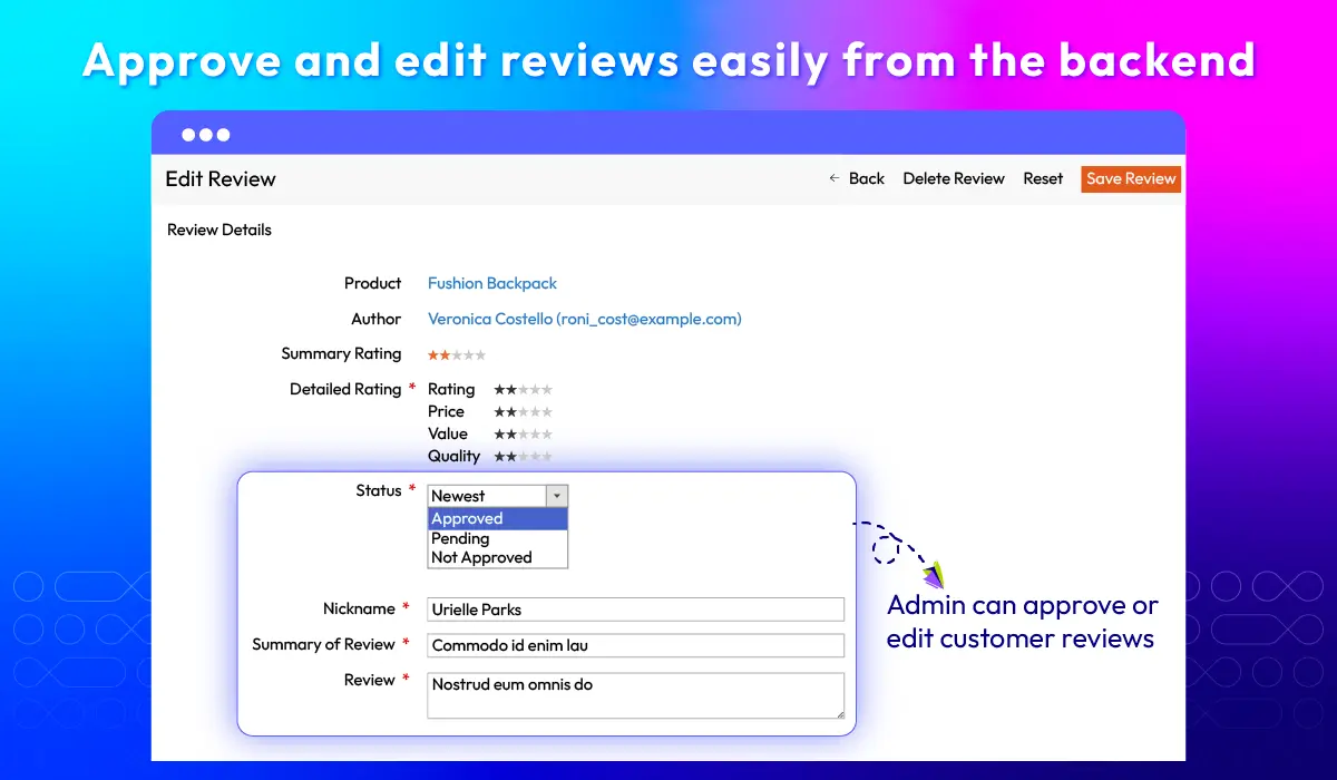 Manage every aspect of your store’s reviews with ease. With Magento 2 advanced review tools, you can handle customer opinions smoothly, keep everything consistent across pages, and build a transparent space that fosters trust between shoppers and your brand.