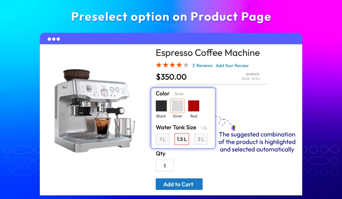 Yes, with preselect option, customers do not need to reselect each attribute as usual and they can add to cart the combination instantly with one-click.