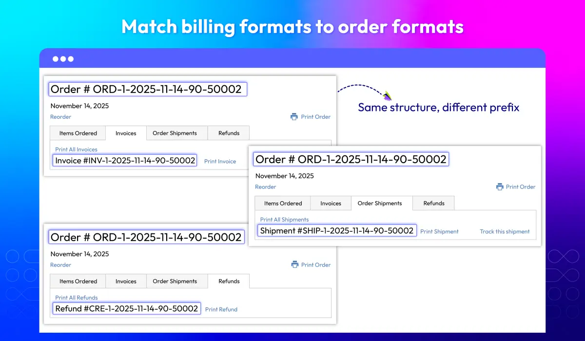 Absolutely. You can create unique formats for each billing document or sync them with the order number while changing only the prefix (e.g., ORD-0001 → INV-0001 → CRE-0001). This gives you full control over all Magento 2 billing document numbers.