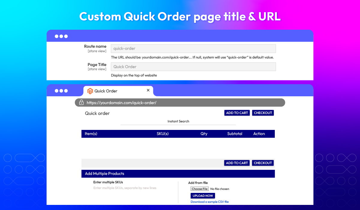 Magento 2 Quick Order extension is built to remove friction from large or repeat purchases. Whether your customers prefer uploading files, entering SKUs, or selecting products manually, the extension offers flexible methods to speed up ordering and reduce manual work.