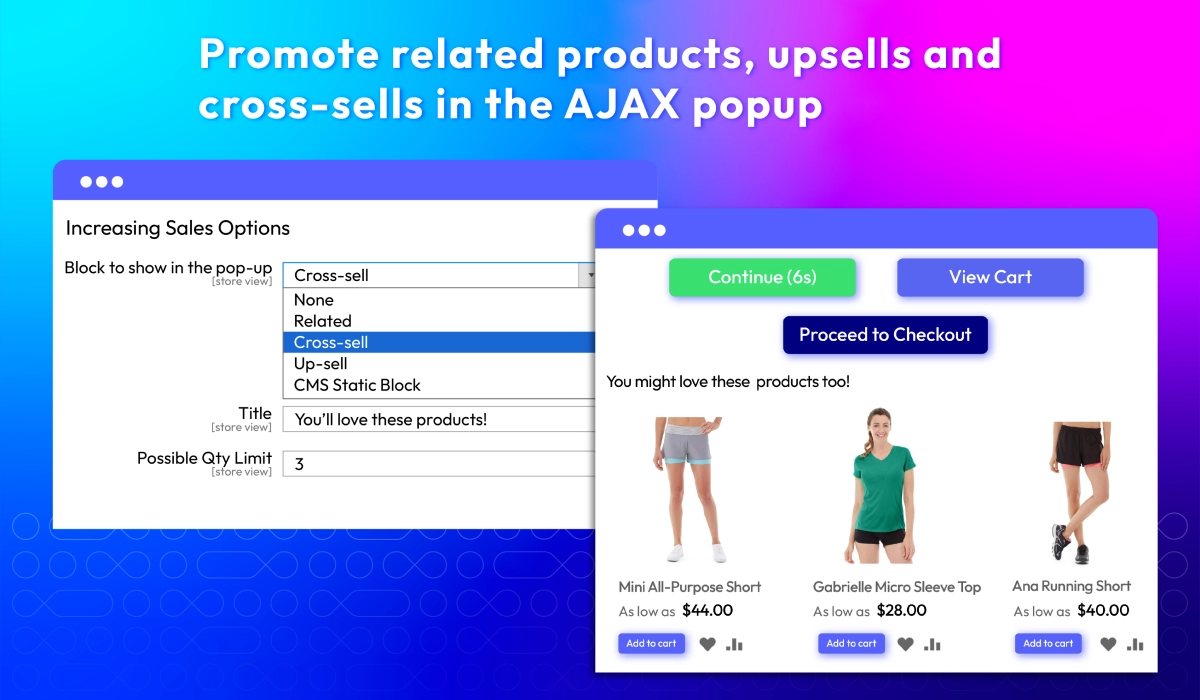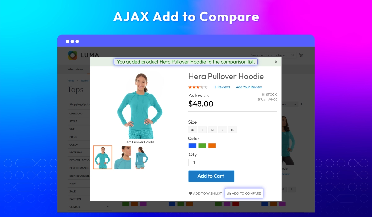 AJAX Cart module by Mageplaza lets shoppers add products, compare items, and save to wishlists instantly without losing their place. With seamless cart updates and built-in upsell options, it keeps buyers moving toward checkout faster while increasing order value.