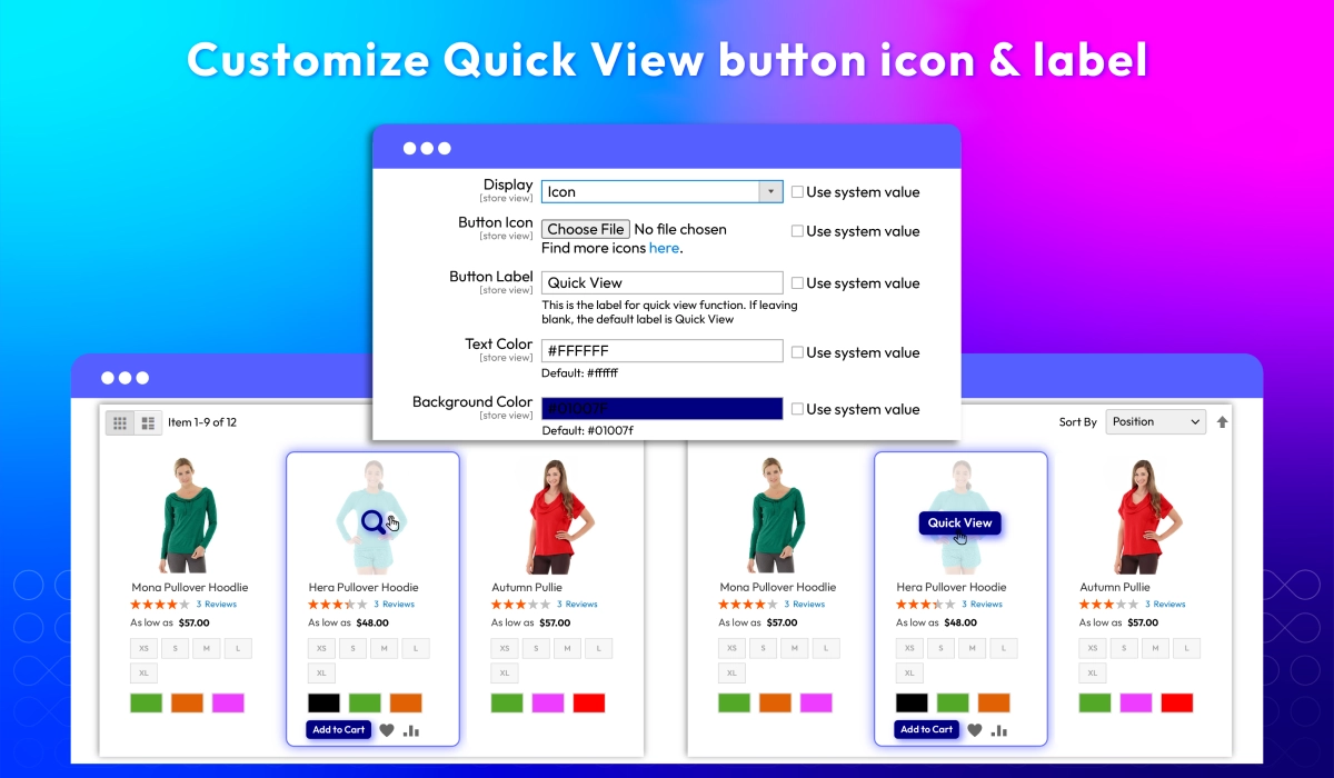 Yes, definitely. From the admin backend, you can use label or upload icon for Quick View. Then, you can select text color, background color.