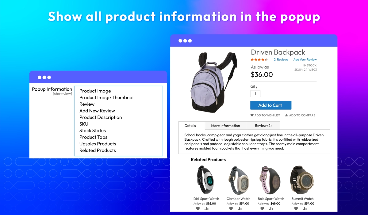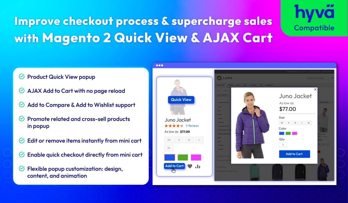 Magento 2 Quick View extension lets shoppers preview products instantly from any page, keeping them engaged without breaking their browsing flow. With full product details and a customizable Quick View button, customers can explore faster and make decisions sooner.