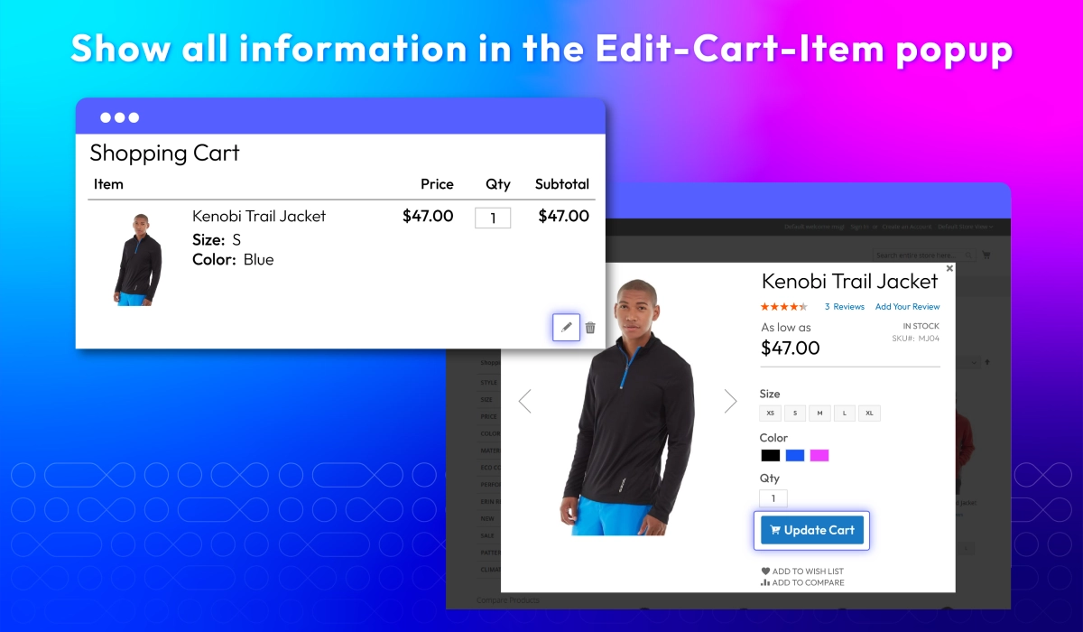Yes, the pop-up is also supported to edit selected items on Shopping Cart page, so you will not be redirected to the Product Page. Just quickly edit and quickly checkout.