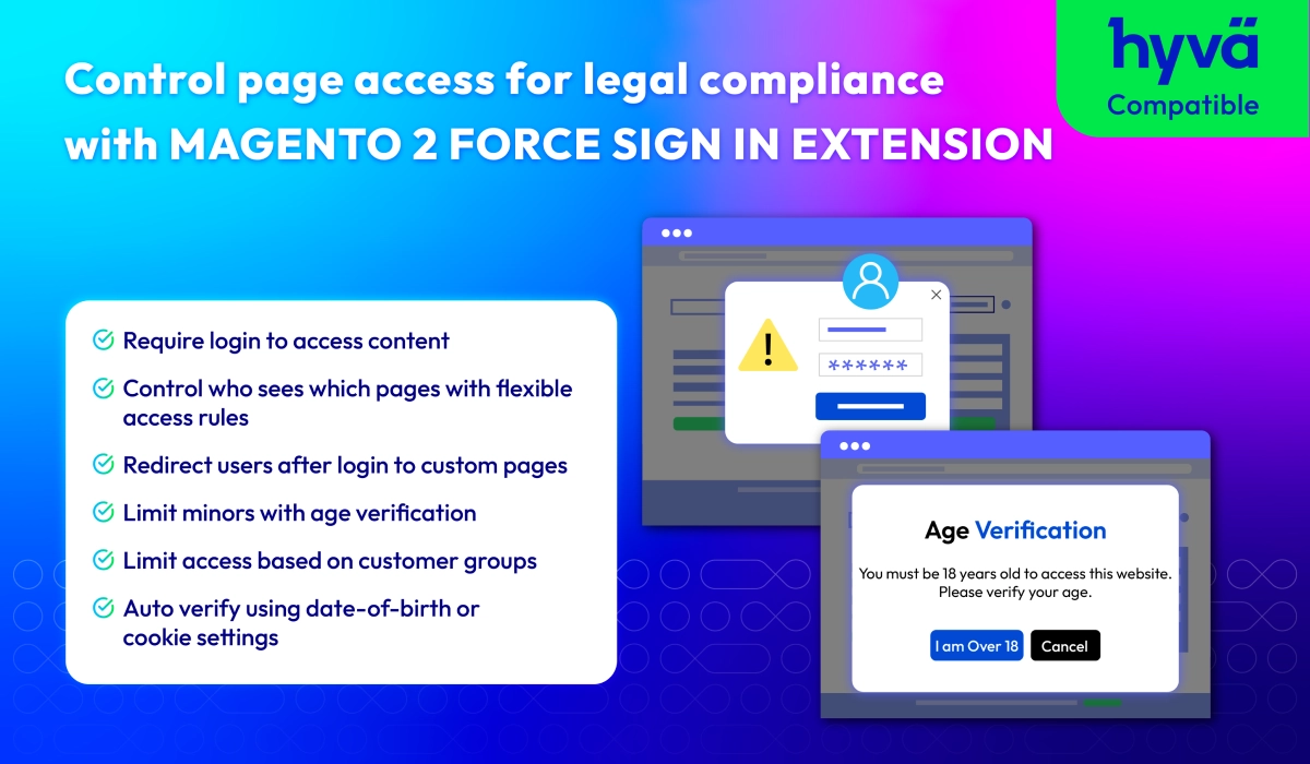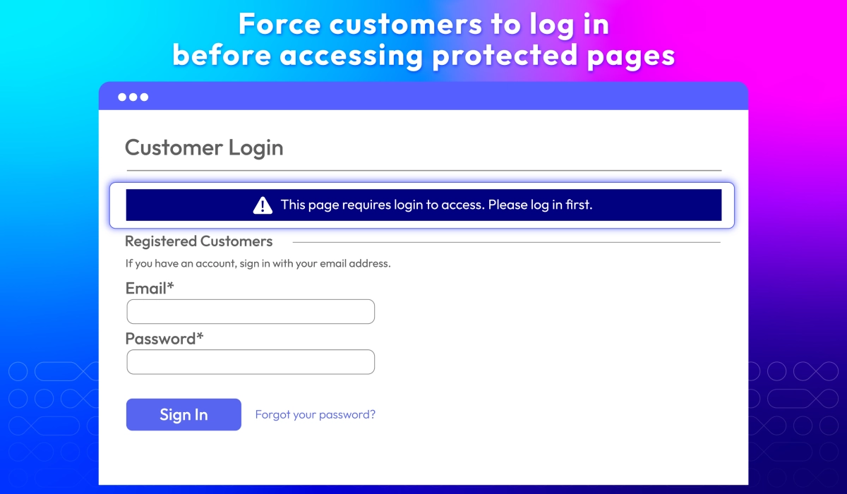The Force Sign-In extension restricts access to specific store pages, requiring visitors to log in or create an account before viewing content. By using this solution, stores can protect private data, encourage account registration, and guide customers to suitable pages.
