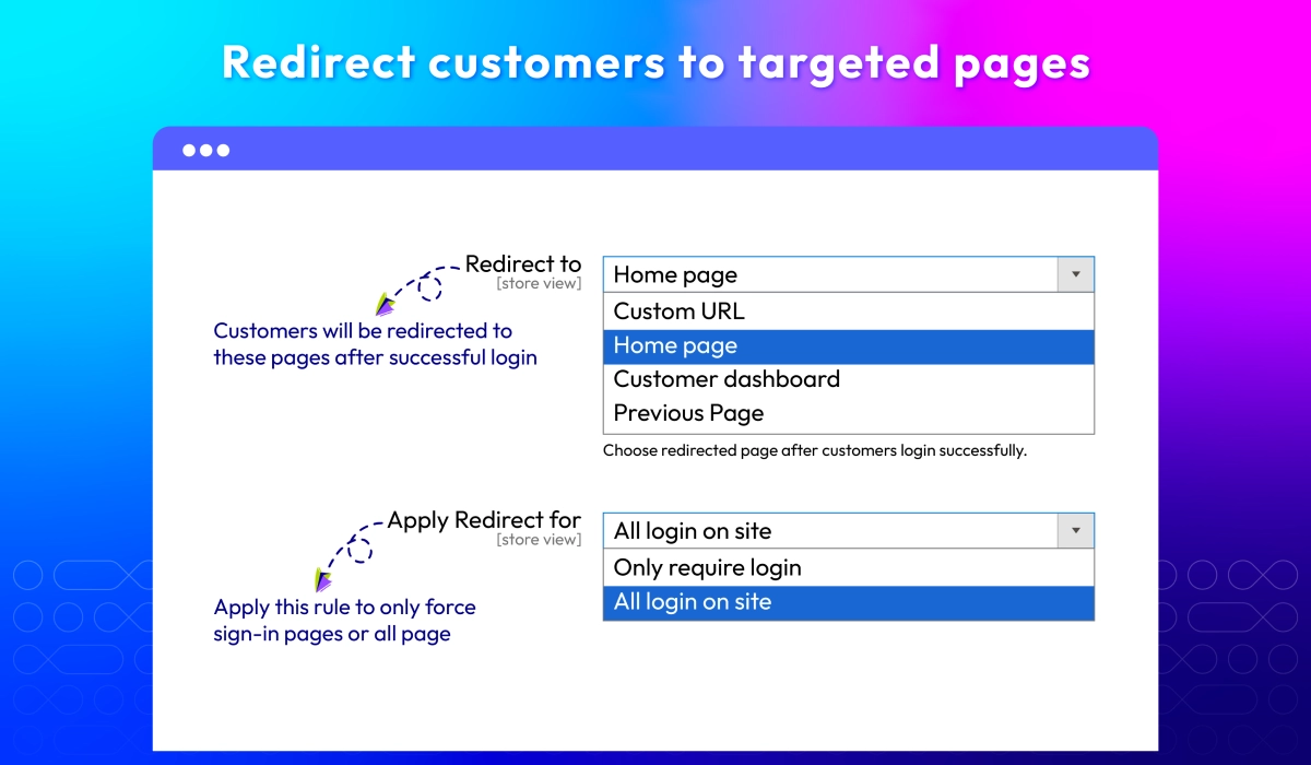 Absolutely. The module lets you set a destination page after login, such as the customer dashboard, homepage, previous page, or a custom URL - a great way to guide customers to promotions, membership areas, or key landing pages.