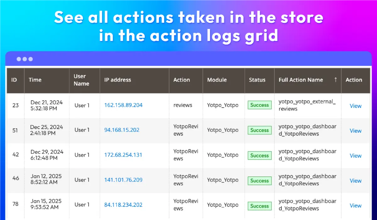 Keep an eye on security activity in your Magento store and understand what’s happening behind the scenes. It gives you better visibility into important events, so you can stay aware and react quickly when something looks unusual.