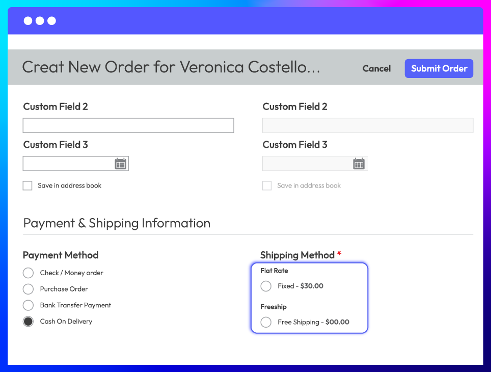Yes. Shipping rules work for customer checkouts and backend orders created or edited by store admins, ensuring consistent shipping behavior across all order workflows.