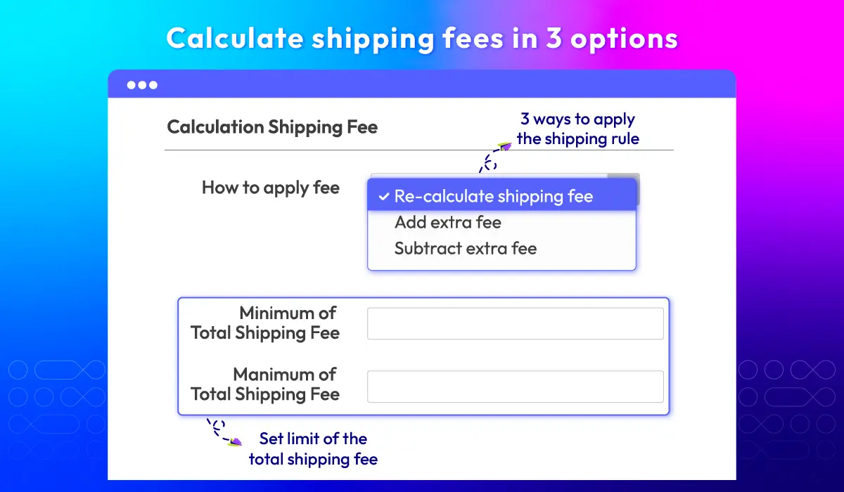 Absolutely. You can recalculate shipping fees, add extra charges, or apply discounts. Fees can be configured per cart or per item using fixed amounts, percentages, or weight-based pricing.