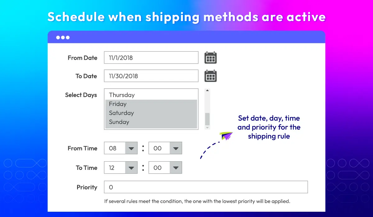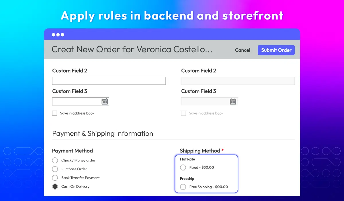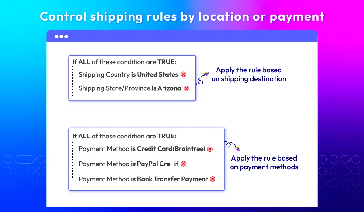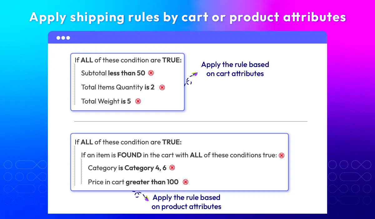 Not every shipping method should appear for every order. With smart conditions, you can control exactly when each shipping option is shown at checkout, keeping the experience clear, relevant, and friction-free for shoppers.